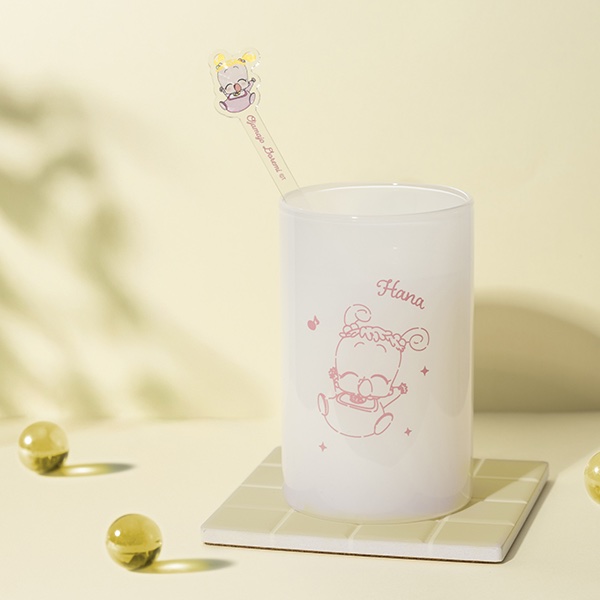 這時尚的玻璃杯呈直形,並塗有每種飲料的圖像顏色!