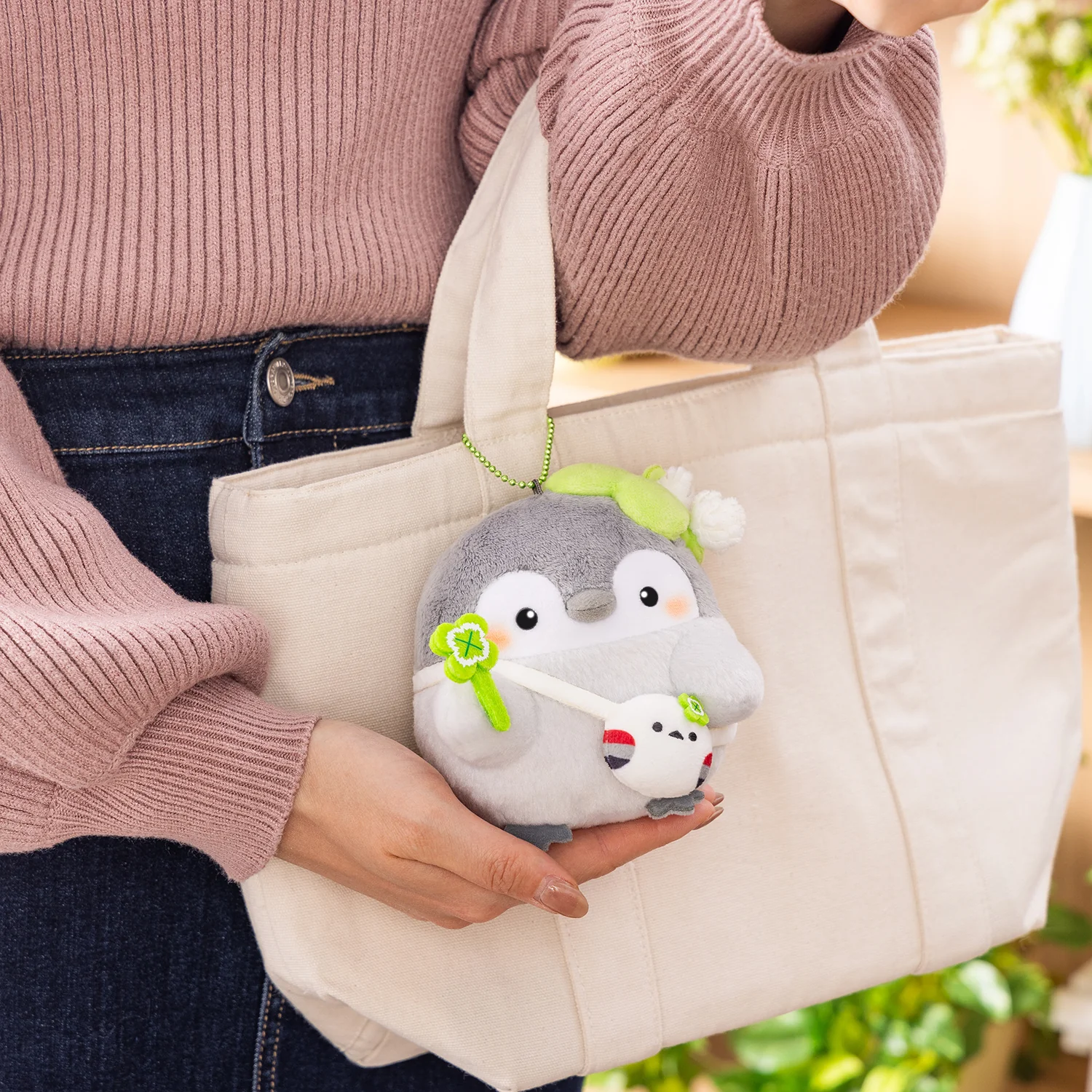 正能量企鵝 快樂四葉草帽步行公仔匙扣